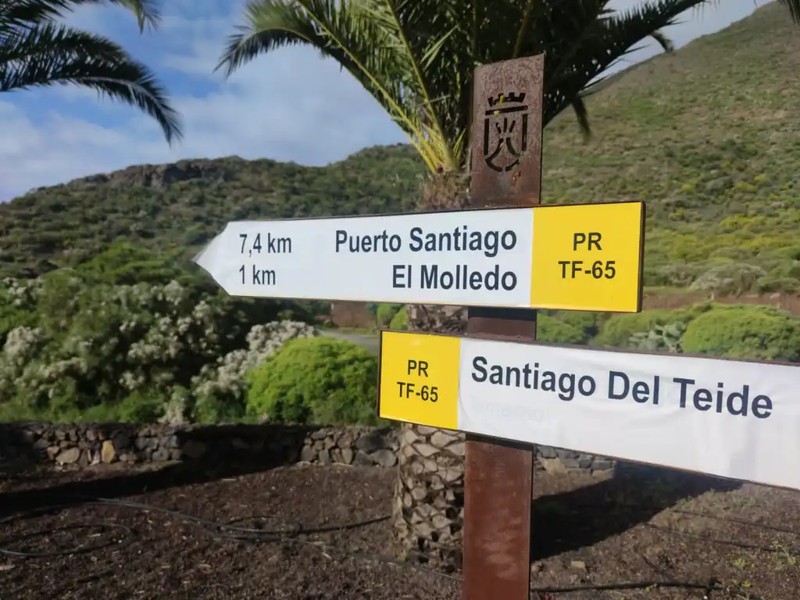 Sendeiro PR-65 de Santiago do Teide ata Puerto Santiago, por un antigo camiño real entre muros de pedra que delimitan os campos de cultivo, que comunicaba ambos os pobos e que en partes aínda conserva o empedrado. Unha ruta doada en todo o seu percorrido, con unha baixada pronunciada despois do Molledo, pero sen moita dificultade.